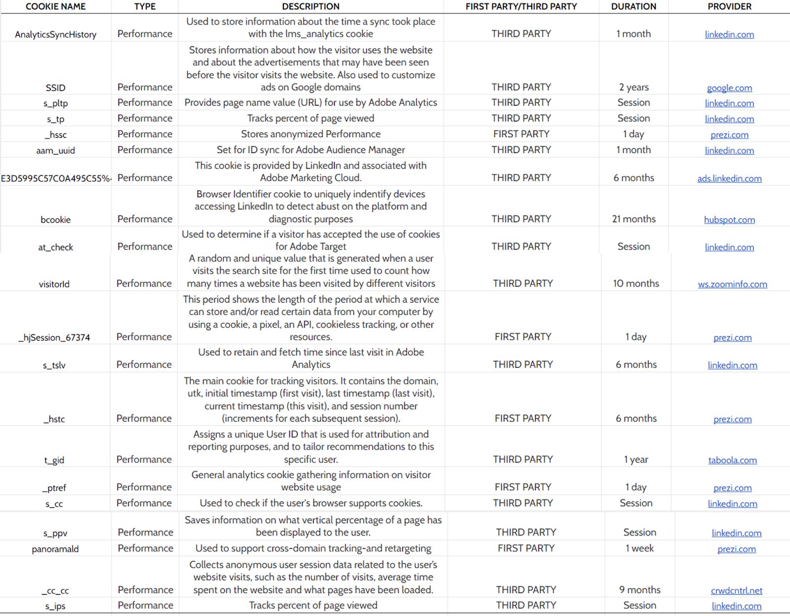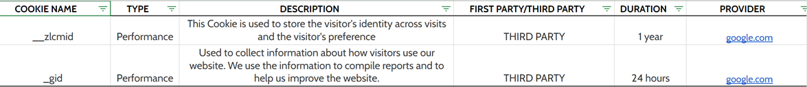 Based on their function, our Website uses the following categories of cookies: