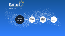 Transcript: Rapidly growing property developer www.barnettdevelopments.com Who we are Who we are Developments QS QS FD Growth QS QS FD QS FD Number of Projects 1 2 2-3 4-6 6 (3 large 3 small) £30M QS £30M: Develop-ments £30M Equity funding for projects £8M - float £22M - terms pre-agreed Example finance of £70M project Example finance of £70M project Site purchase (£22M) Development cost (£30M) Estimated GDV: £70M £100M: Lifestyle villages Lifestyle villages £100M Concept We will create a network of top quality lifestyle villages for healthy and active recent retirees (i.e. 55-70). Residents will enjoy the highest standard of service, which we’re calling ‘cruise ship living on land’. We will acquire existing assets currently trading as golf resort hotels and convert them to lifestyle villages. Once converted and full the asset will in effect be a hotel with guaranteed 100% occupancy all year round, vastly increasing profitability and value. Our ideal asset is a minimum 4* golf resort hotel, with detached lodges on site, in a rural area but within 10 miles of a major city and within 30 miles of an international airport. Cruise ship living, on land Why golf resorts? Acquire for a fraction of the build cost Easy to convert to LSV Trained staff & amenities already in situ Beautiful, spacious grounds Huge potential for expansion Why golf resorts? Market Lots of people 11.6 million over 65s in the UK.* Projected: 18.7 million by 2045.* Lots of money Currently, there are more than 670,000 retirees with assets of over £1M.** Lots of growth potential In the UK, 0.5% of over-65s live in retirement villages.*** In USA/Aus/SA/NZ, 5% do.*** Potentially the UK retirement village market could grow from 0.5% to 5% of over-65s (58k to 580k). *Office for National Statistics, Overview of UK Population: March 2017 **Office for National Statistics *** BBC News http://www.bbc.co.uk/news/health-27208531 Market Example customers Both retire at 62. Assets: house (€1.2M), investments (capitalisation €300k). Pension income (private + state): €41k (Tom), €31k (Hattie). Sell their house, pass on €750k to their children, add €150k to their investment pot. €300k remainder buys a lifetime interest in a LSV lodge. Their income pays their €400/wk pp service charge. On their death/exit to full time care, their lodge interest is redeemed by the LSV Co., with their €300k passing back to them / their estate. Tom & Hattie £100M: the first stage What we'll do with it - acquire and convert six golf resorts to establish the model £100M: the first stage Worked example: Blarney 168 acre site Hotel with 64 bedrooms 56 2 bedroom lodges 18 hole golf course 2 storey clubhouse Bar (30 seats) Restaurant (110 covers, full kitchen facilities) Conference facilities (60- and 200-person suites, 3 meeting rooms) Health club & spa (5 treatment rooms, 20m pool, sauna, steam room, jacuzzi, gym) Worked example: Blarney £15M 5% debenture capital & 30% equity stake Blarney LSV Co. £8M Site Purchase £2M Marketing £16M Revenue from sale of lodges £5M Build care homes £5M Build 100 new suites £15M Repaid debenture loan £130M Year 5 value (30% = £39M) £4M Acquire lodges and remodel Year 5-6 The future Phase 1: £100M, 6 villages, prove model Phase 2: £400M, 24 more villages, expanding into Europe Phase 3: £2.5Bn Phase 4: USA The future Group Structure Construction management Contracts & marketing QS NB NB FC 33% Hotel Guru 20 Portland Sq. Portland 88 Portland View 2017 LB Construction management Contracts & marketing QS NB NB FC 33% Hotel Guru Watergate Bay Portland 88 SPV 4 2017/18 LB £30M SPV 5 Coyle Place Construction management Contracts & marketing QS NB NB FC 33% Hotel Guru Watergate Bay Portland 88 SPV 4 2017/18 SPV 5 Barnett Group 50% 33% FD NB Finance FD 33% 50% Coyle Place LSV 1 GM LSV 2 GM LSVs Barnett Group Construction management Finance Contracts & marketing QS 50% 33% 50% 33% FD FD NB NB FD 33% Hotel Guru SPV 4 SPV 5 2017/18 Watergate Bay Portland 88 First tranche of LSV funding Coyle Place LSV 1 GM LSV 2 GM LSV 3 GM LSV 4 GM LSVs Barnett Group Construction management Finance Contracts & marketing QS 50% 33% 50% 33% FD FD NB NB FD 33% Hotel Guru Hackney-Wick Sion Hill SPV 6 2019 Watergate Bay Portland 88 LSV 6 GM LSV 5 GM Coyle Place LSV 1 GM LSV 2 GM LSV 6 GM LSV 3 GM LSV 5 GM LSV 4 GM LSVs Barnett Group Construction management Finance Contracts & marketing QS 50% 33% 50% 33% FD FD NB NB FD 33% Hotel Guru SPV 1 SPV 2 SPV 3 SPV 4 SPV 5 SPV 6 2021 Phase 2: £400M? 24 more LSVs