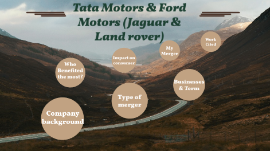 Transcript: Tata Motors & Ford Motors (Jaguar & Land rover) Company Background Company background JAGUAR Jaguar Cars was the company that was responsible for the production of Jaguar cars until its operations were fully merged with those of Land Rover to form Jaguar Land Rover on 1 January 2013. Jaguar's business was founded as the Swallow Sidecar Company in 1922, originally making motorcycle sidecars before developing bodies for passenger cars. The company's name was changed from S. S. Cars to Jaguar Cars in 1945. A merger with the British Motor Corporation followed in 1966, the resulting enlarged company now being renamed as British Motor Holdings (BMH), which in 1968 merged with Leyland Motor Corporation and became British Leyland, itself to be nationalised in 1975. Jaguar was spun off from British Leyland and was listed on the London Stock Exchange in 1984, becoming a constituent of the FTSE 100 Index until it was acquired by Ford in 1990. Ford owned Jaguar Cars, also buying Land Rover in 2000, until 2008 when it sold both to Tata Motors. Tata created Jaguar Land Rover as a subsidiary holding company. At operating company level, in 2013 Jaguar Cars was merged with Land Rover to form Jaguar Land Rover Limited as the single design, manufacture, sales company and brand owner for both Jaguar and Land Rover vehicles. Jaguar Cars was the company that was responsible for the production of Jaguar cars until its operations were fully merged with those of Land Rover to form Jaguar Land Rover on 1 January 2013. Jaguar's business was founded as the Swallow Sidecar Company in 1922, originally making motorcycle sidecars before developing bodies for passenger cars. The company's name was changed from S. S. Cars to Jaguar Cars in 1945. A merger with the British Motor Corporation followed in 1966, the resulting enlarged company now being renamed as British Motor Holdings (BMH), which in 1968 merged with Leyland Motor Corporation and became British Leyland, itself to be nationalised in 1975. Jaguar was spun off from British Leyland and was listed on the London Stock Exchange in 1984, becoming a constituent of the FTSE 100 Index until it was acquired by Ford in 1990. Ford owned Jaguar Cars, also buying Land Rover in 2000, until 2008 when it sold both to Tata Motors. Tata created Jaguar Land Rover as a subsidiary holding company. At operating company level, in 2013 Jaguar Cars was merged with Land Rover to form Jaguar Land Rover Limited as the single design, manufacture, sales company and brand owner for both Jaguar and Land Rover vehicles Land Rover LAND ROVER Land Rover is a British brand of four-wheel drive cars that exclusively offers premium and luxury sport utility vehicles. Owned by multinational car manufacturer Jaguar Land Rover (JLR), which has been owned by India's Tata Motors since 2008, JLR currently build Land Rovers in Brazil, China, India, Slovakia, and the United Kingdom. The Land Rover name was originally used by the Rover Company for a boxy four-wheel drive, off-road model, launched in 1948—now known as the Land Rover Series, it is today regarded as a British icon. Over time, Land Rover grew into its own brand (and for a while also a company), encompassing a consistently growing range of four-wheel drive, off-road capable models. Starting with the much more upmarket 1970 Range Rover, and subsequent introductions of the mid-range Discovery and entry-level Freelander line (in 1989 and 1997), as well as the 1990 Land Rover Defender refresh, the marque today includes two models of Discovery, four distinct models of Range Rover, and after a three-year hiatus, a second generation of Defenders have gone into production for the 2020 model year—in short or long wheelbase, as before. Land Rover is a British brand of four-wheel drive cars that exclusively offers premium and luxury sport utility vehicles. Owned by multinational car manufacturer Jaguar Land Rover (JLR), which has been owned by India's Tata Motors since 2008, JLR currently build Land Rovers in Brazil, China, India, Slovakia, and the United Kingdom. The Land Rover name was originally used by the Rover Company for a boxy four-wheel drive, off-road model, launched in 1948—now known as the Land Rover Series, it is today regarded as a British icon. Over time, Land Rover grew into its own brand (and for a while also a company), encompassing a consistently growing range of four-wheel drive, off-road capable models. Starting with the much more upmarket 1970 Range Rover, and subsequent introductions of the mid-range Discovery and entry-level Freelander line (in 1989 and 1997), as well as the 1990 Land Rover Defender refresh, the marque today includes two models of Discovery, four distinct models of Range Rover, and after a three-year hiatus, a second generation of Defenders have gone into production for the 2020 model year—in short or long wheelbase, as before. Type of Merger Type of merger -The acquisition between Tata Motors Ltd. and Ford Motors is an example of a Who My