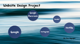 Transcript: Ha-Yen Nguyen Website Design Project Google Google I use Google for basically everything. When doing a paper, I'll research things and I'll browse the internet for fun or in my free-time I imagine it looks like a big building in the center of the internet (almost like a town or city hall) inside, would look like a customer service center & multiple people to answer questions also, you would see a big projection of the world's most recent or popular searches updating constantly since Google is in the center of the internet, there would be bridges, roads, and even elevators branching out, leading to different websites Google Classroom Google Classroom I imagine Google Classroom to be in the form of a regular school Each classroom (taught by a teacher) would have rows of desks with open laptops like a student would with their laptop, words would be typing themselves and you can see work begin done, but you only see the laptop not the student I use Google Classroom to do work assigned by my teachers I use Google Classroom to do work assigned by my teachers or take online quizzes/tests I also use it to study. Sometimes, my teacher will post resourceful links on Google Classroom for us to prepare for tests. I also use it to study. Sometimes, my teacher will post resourceful links on Google Classroom for us to prepare for tests. Instagram Instagram I use instagram to stay connected with my friends and family. Its a fun way to see what we're up to i imagine there would be photographers with flashing cameras, taking photos constantly (even though we can't see the subject of their photo since the cameras are polaroid-type cameras, the printed picture would fly up through a portal all around would be flickering hearts, the one you see when you "like" a photo Instagram would be located in a hall of other social media apps (facebook, twitter, etc.) Quizlet Quizlet In the internet, Quizlet would be located in the school because it's an educational website I imagine it being in the library, almost like tutoring there would be a digitical copy of the student learning/memorizing with another person (who represents the website) wearing a white t-shirt with a blue "Q" to represent the Quizlet logo. for example, when you are using the flashcards feature on Quizlet, (from inside the internet) it would look like a study buddy is quizzing you with flashcards. when you're using the test feature, it would look like you were taking a real test at a desk If the internet was set up like a city, Netflix would be the movie theater to get a ticket, you would need to sign in and multiple people are watching the same screen but each person sees a different movie It would look like any ordinary movie theater the chairs would be able to recline with red leather and the walls would be black (the Netflix colors) Netflix Netflix