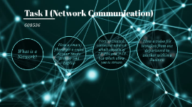Transcript: 608536 Task 1 (Network Communication) What is a Network? What is a network? a network could be considered as a set of desktops, laptops, servers and network devices and all these devices are connected to each other to share. These devices that are connected to each other will share and exchange data. House Hold Example Network Example You are on a PC device and you are willing to collect some free stock photo of cats. So you go to the internet to collect some of these photos. You would go on a search engine for this and what the search engine will do is connect you to the internet and network and because you are connected to the internet or the network you will gain access to communicate to other devices. You will allow gain authorization and access to the data they share from that device. You are somewhat connecting to that device to receive the free stock photo of the images and downloading them. When you are getting e email sent from one device such as a phone, there are many processes done, When your smart phone connects to the internet to the device there will be various methods to connect. The mobile will connect to different types of networks such as 3G, 4G. 5G, etc or even WAP (wireless access point). When you select a method to connect to the internet and successfully connect to it, you will be able to use a application to send a email. You can use Outlook, groupwise, Gmail, etc. Selecting a connection and a application How a smart phone get a email to your tutors desktop and Laptop Part 2 When you have completed creating the email, and you have selected who you wish to send it too. you will press the send button and when the send button has been pressed, the email will be moved but before it is moved it will be generated and changed to binary. It will convert to binary so it can be put into packets, and them being put into packets will allow them to be sent through the internet. the email will also be encrypted making the email more secure and harder for unauthorized users to crack the email. Generating to binary, encryption and locating and placing packets After the message have been converted to binary and has become encrypted. It will be sent. before it reaches the tutors network, the tutors network may have a firewall. Because there is a firewall involved, the tutor firewall will check the message before it reaches the network. If any malicious files are found within that email will a malicious attachment, the fire wall will prevent this from accessing the network. After it has been checked, the email will pass through and when it reaches the device, the encrypted data will go out of its packets and be reassembled. By passing the firewall then to the router to move across When the Message is being sent through the packets and nodes. The email will have to eventually meet the router and the ISP. If the phone is connected to a 3G network or a 4G network. the phone can go to the ISP straight away instead of having to deal with more processes. It will not need to go through the router at all. Also when the message is being sent it will use Protocols such as IMAP and SMTP. Whereas collecting the email will use POP3 and SMTP. A SSL sent to the Router + the ISP's When the message has been sent and the network and ISP has received the email and the firewall verified and passed it through. When the tutor logs in the website they will use the SMTP protocol to log in and when they log in the email that has been sent will be collected by the POP protocol on the tutors desktop and computer. When the message has been deployed and the tutor logs on the desktop or laptop. Process/Diagram the first thing that should be set up is a router. the router will allow you to connect to the internet and without this, none of these devices can connect onlline. Once the router is up and going, the next stage is for you to connect the router tio the switch. If we had a talk talk router we would need to connect this using a RJ45 connector ethernet cable through the wall. The other side of the ethernet cable should connect to the switch. Setting up router How to create a connected network which consists of TV PS4 and NAZ box which allow you to stream Part 2 The NAS box will be used to store all the images, movies, videos and musix. The NAS box will act like a server which will allow me to view the files through a monitor. But first the NAZ box will not be directly connected to the switch. The NAZ box will be connected using the network and will be directly connected to the router. Since this is a server, it will consist a lot of space and because it consists of lots of space I can use to store big files such as films, images etc, that may be 4K. I will use a RJ45 connector ethernet cable, may connect this to the switch. Connecting the NAS box to the switch After the NAS box is assembled I will next connect up the PS4 to the switch. At the back of the PS4 where it displays its display port, there should be a Ethernet port which
